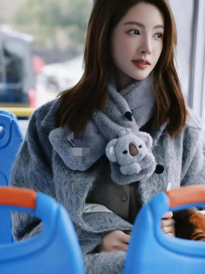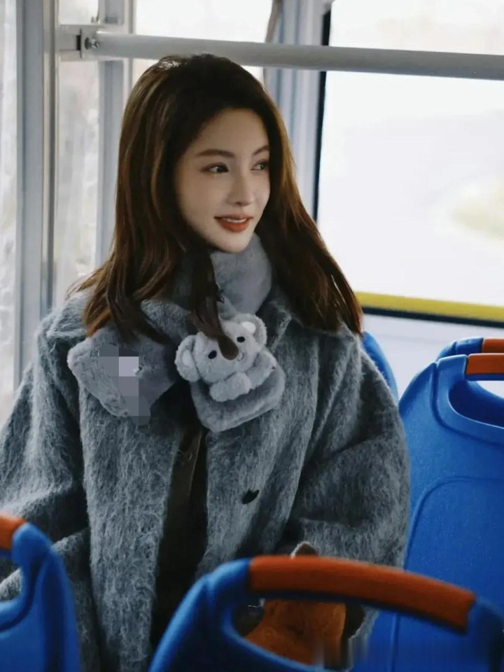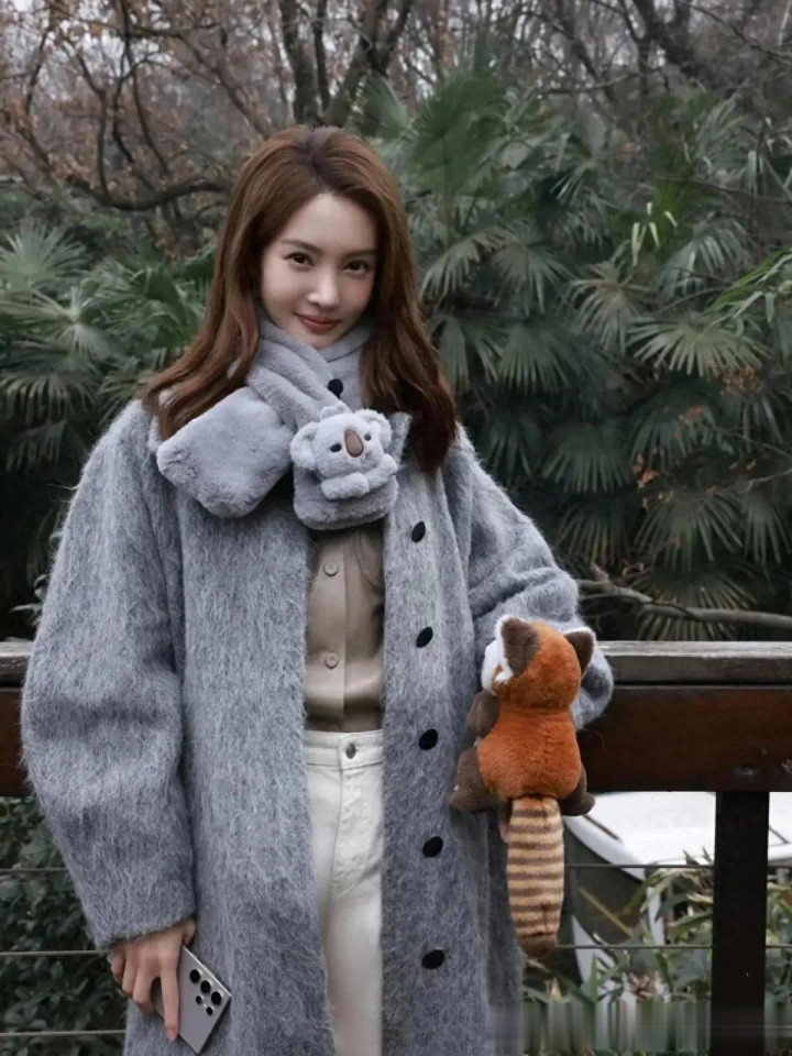 34岁金晨增肥后大变样! 穿灰色大衣+围巾, 时髦减龄又高级!